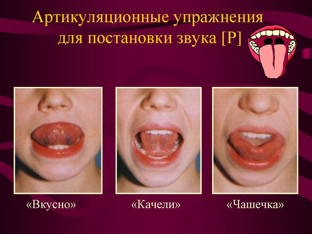 Нарушение звукопроизношения, более твердый звук «р» появится после нескольких дней ежедневных тренировок. Главное правильно и четко повторять упражнение, и картавость отступит.