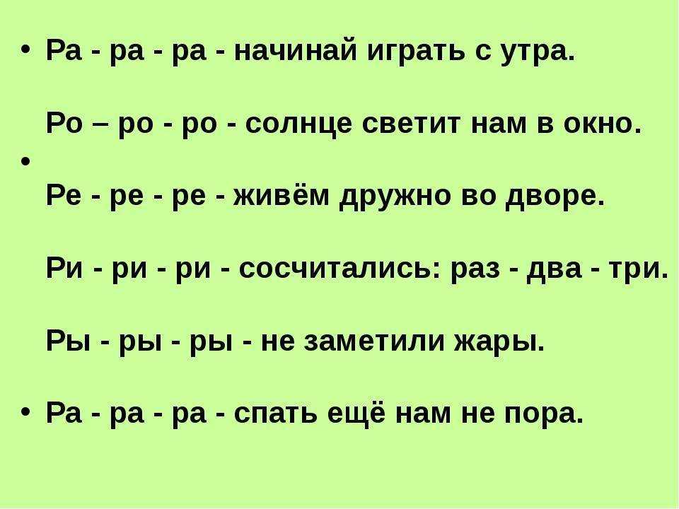 - Последнее упражнение – скороговорки от картавости с буквой «р». К счастью, есть огромное количество детских и взрослых скороговорок. Начните с самых простых стишков и постепенно переходите на более сложные варианты.