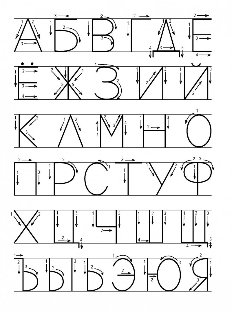 Обучение письму печатными буквами. Оно начинается с освоения написания символов, составляющих буквы: линии, круги, полукруги, диагонали и т.д