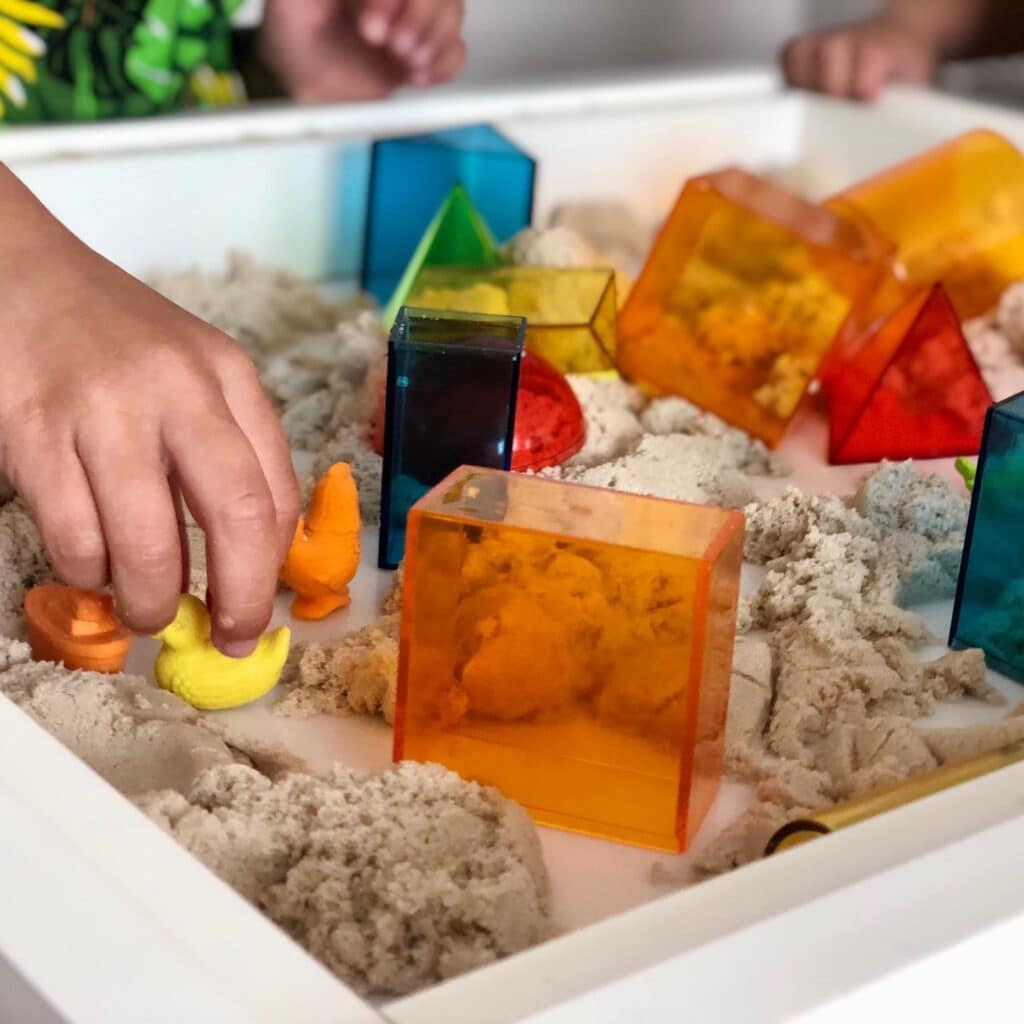 Пусть песок будет грунтом, на котором возвышаются небоскребы из лего или небольшие домишки из кубиков.