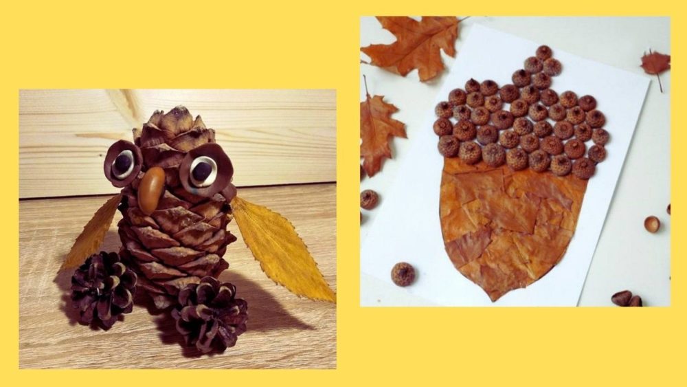 Занятие развивает воображение и творческие способности. Для игры соберите природный материал: шишки, опавшие листья, семена, березовые сережки, куски коры, желуди, кленовые «носики». Предложите воспитанникам сделать из собранного материала поделки. Каждый ребенок создает какую-то свою аппликацию, картину, объемную композицию. Затем рассказывает, из каких частей дерева создавал художественную работу. В завершение занятия можно сделать выставку детских работ с обсуждением.