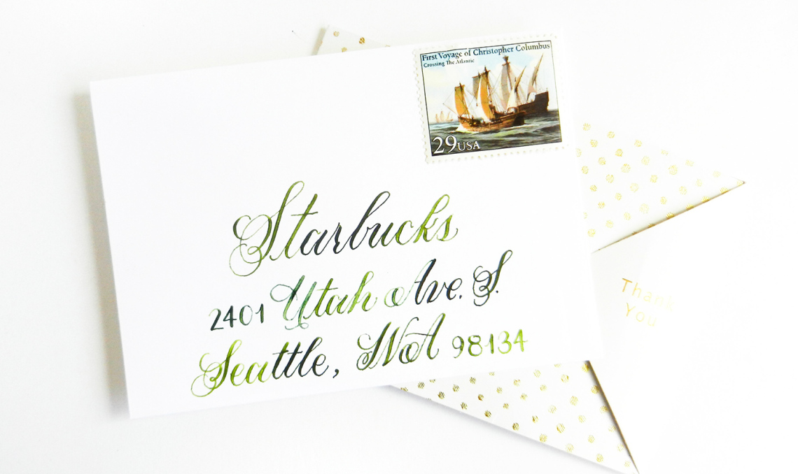Еще одна позитивная сторона каллиграфии – это возможность отправить красивое письмо. Теперь, прежде чем вы ответите, “Я не веду переписку по почте,” хотелось бы показать вам несколько ситуаций, в которых отличная каллиграфия пришла бы на помощь. Давайте представим, что вы идете на собеседование и вы хотите после этого отправить открытку с благодарностью, которая выделит вас среди остальных. Красивая каллиграфия и потрясающий конверт расскажет о вас больше, чем вы можете себе представить