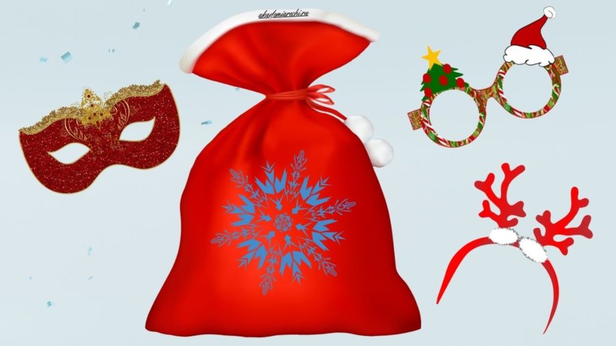 Для музыкальной игры потребуется немалое количество реквизита. Нужно собрать и положить в большой непрозрачный мешок все имеющиеся предметы праздничного гардероба, обручи с ушками, шапочки с помпонами, украшения из мишуры и прочие подобные вещи.