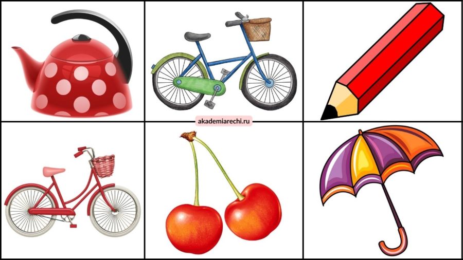 Сложность игры должна заключаться в том, что изображенные предметы могут быть очень похожими, но не одинаковыми. Например, могут быть изображены красные чайники, только один в горошек, а другой сплошного цвета. Или две груши, одна с листочком на черенке, а другая без него.