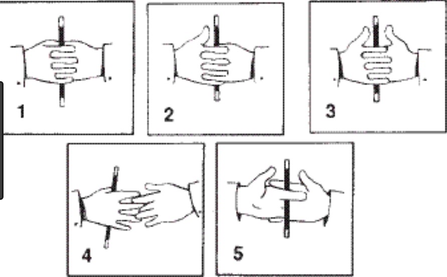 Ручку вращают вокруг своей оси с помощью пальцев обеих рук. Пальчики должны «догонять» друг друга.