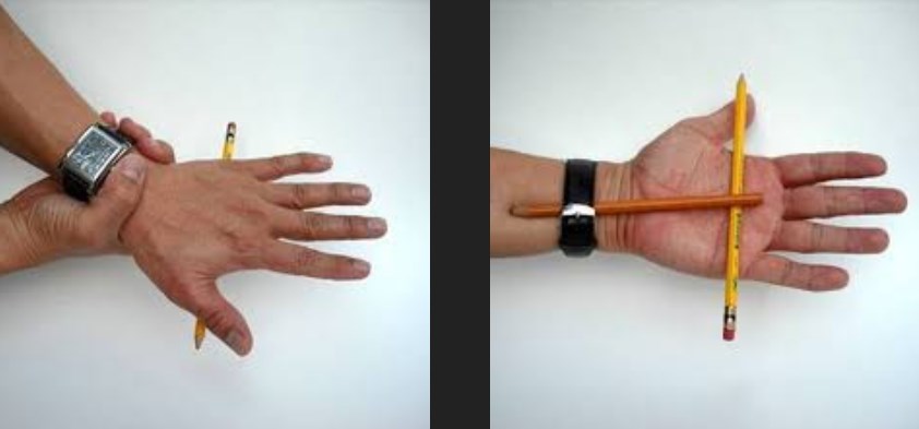 Карандаш прокатывают между пальцев. Нужно стараться его не уронить.