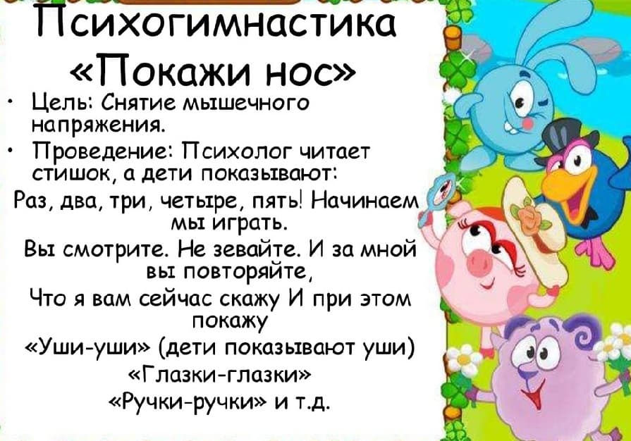 Примеры упражнений в рамках психогимнастики для младших дошкольников: