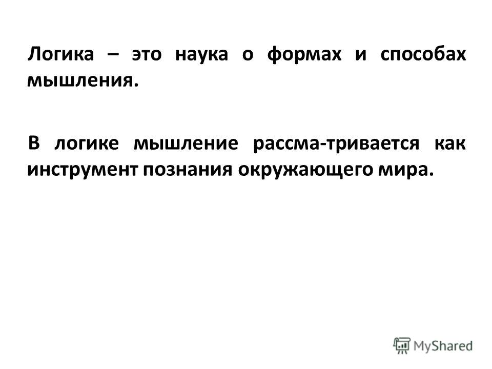 Логика – это наука о формах и способах мышления. В логике мышление рассма-тривается как инструмент познания окружающего мира.