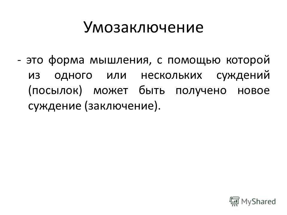 Умозаключение — это форма мышления, с помощью которой из одного или нескольких суждений (посылок) может быть получено новое суждение (заключение).